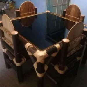 - Fungsionalitas dan Fleksibilitas – Meja dan kursi bambu dapat dipilih yang multifungsi, seperti kursi lipat atau meja extendable, agar ruang makan lebih fleksibel dan adaptif terhadap kebutuhan keluarga atau tamu.